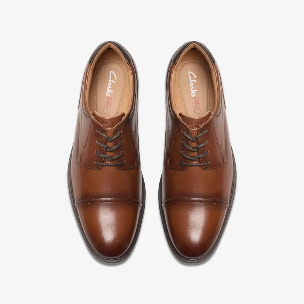 Designed with a Clarks PRO footbed to support long, busy days on your feet, Eldredge Cap is the ultimate in formal footwear. Smooth leathers with crafted stitching lend a timeless look, while light and bouncy Clarks PRO cushioning offers that walking-on-air feeling around the clock. Set atop a slip-resistant rubber sole, this pair has you striding confidently into meetings and after-work socials alike.