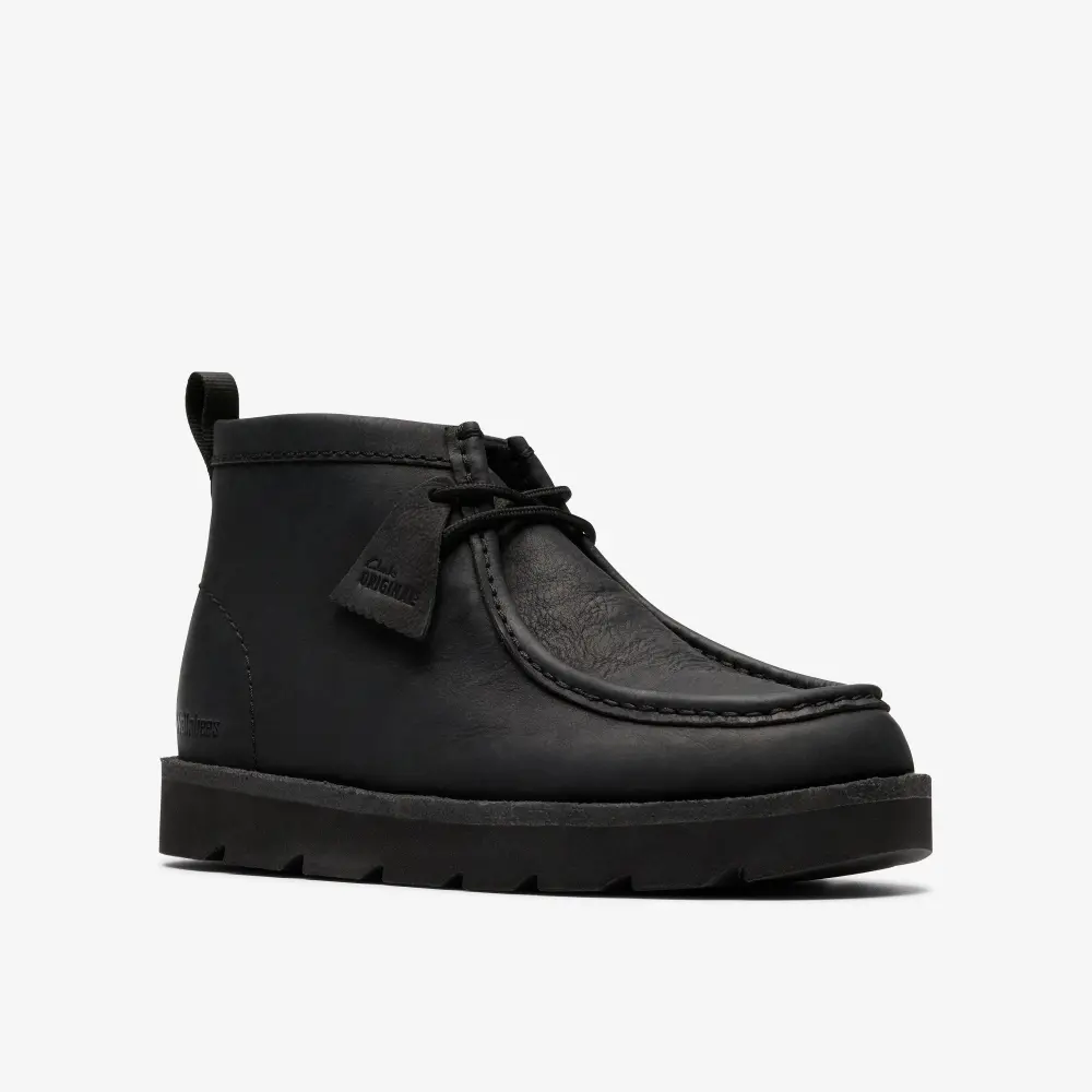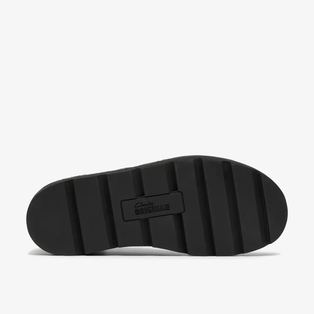 Versatile black Nubuck, with the suede version featuring a warm lining for the harsher seasons. The subtle Wallabee™ logo on the side panel adds a nod to its iconic roots, while the added detail of a webbing pull tab on the heel offers a modern twist.