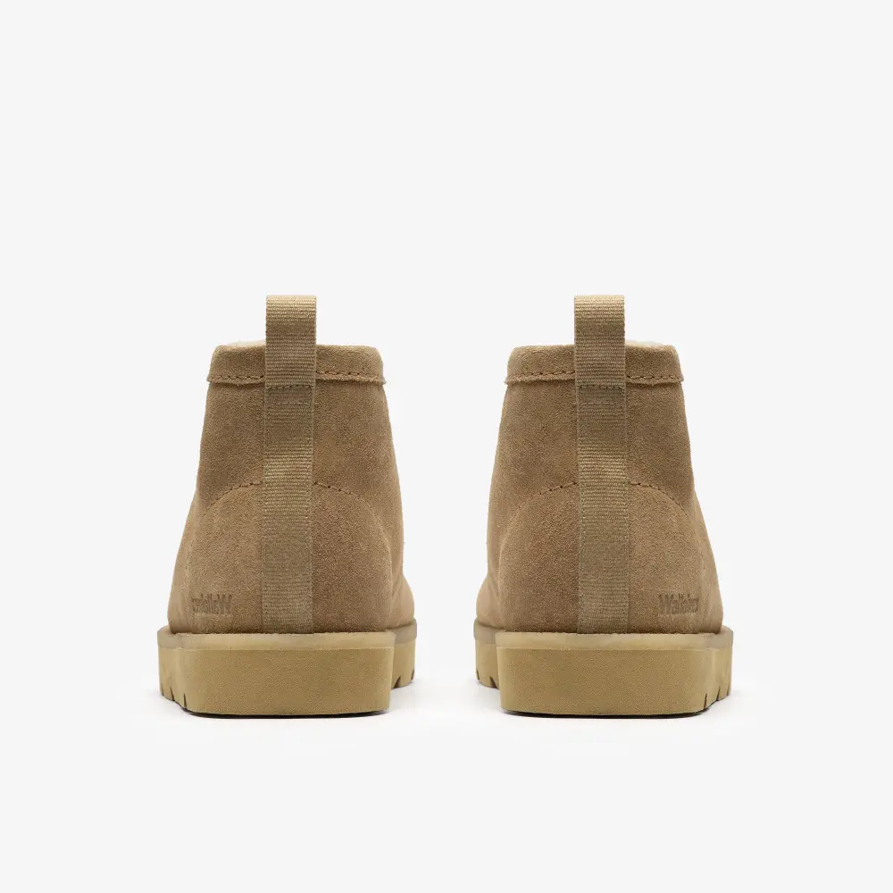 Versatile sand suede, featuring a warm lining for the harsher seasons. The subtle Wallabee™ logo on the side panel adds a nod to its iconic roots, while the added detail of a webbing pull tab on the heel offers a modern twist.