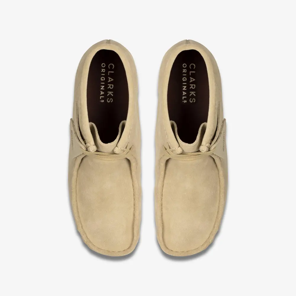 The Wallabee has become an iconic classic in our Clarks Originals collection across the globe thanks to its moccasin construction and structural silhouette. Featuring clean and simple lines, this comfortable lace-up boot in maple suede is teamed with a three-quarter sock for supreme comfort and our signature crepe sole which continues to stand the test of time.