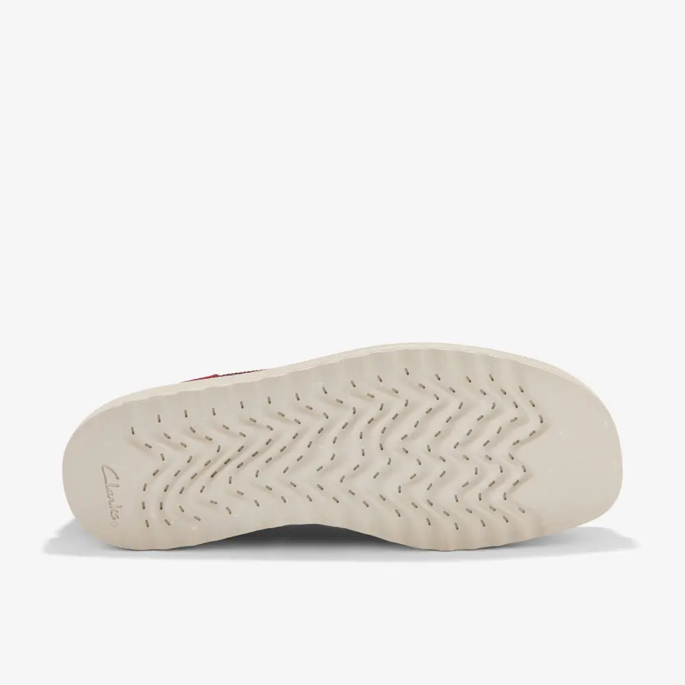 - Breathable burgundy mesh and suede upper