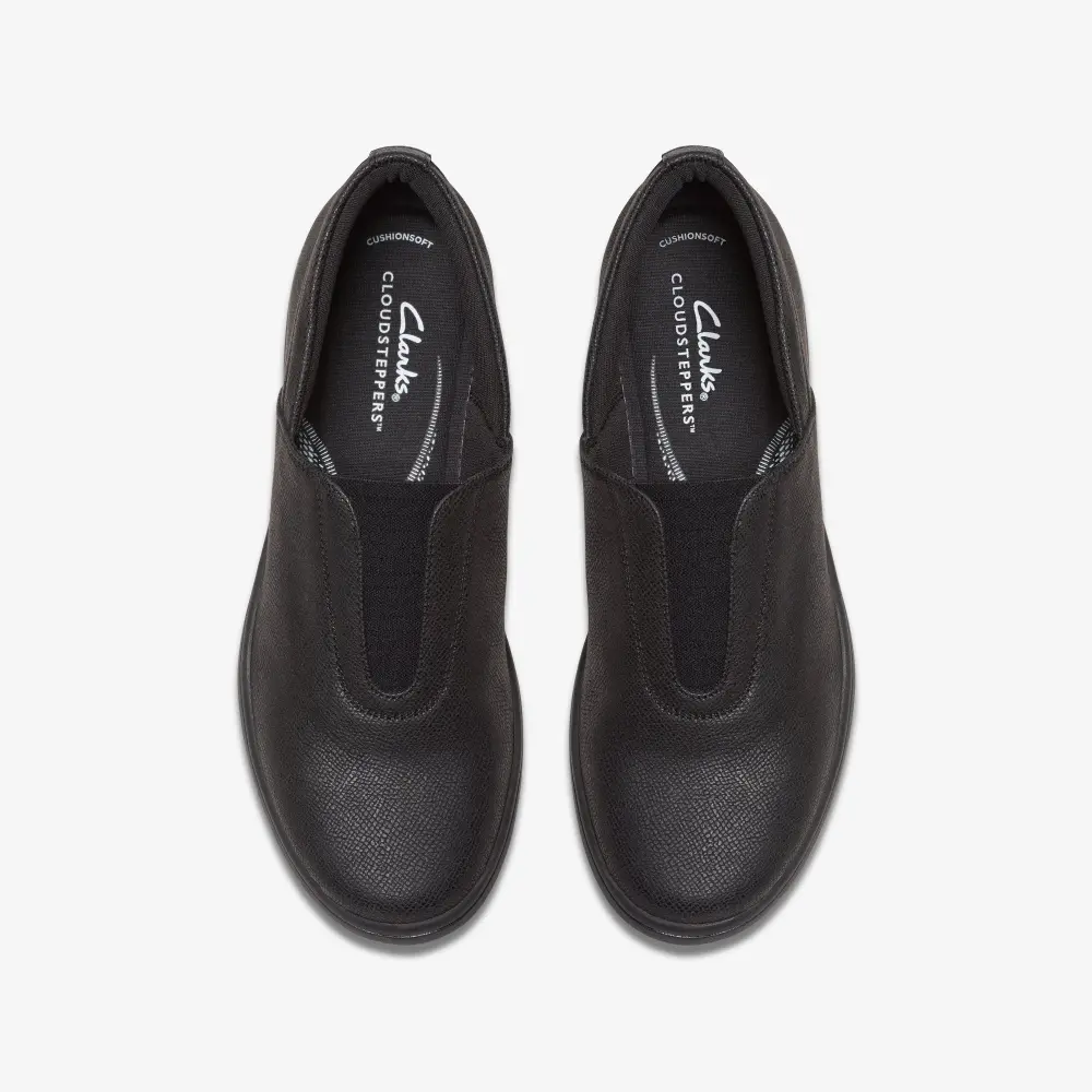 A lightweight construction, relaxed silhouette and refreshed design details define BreezeSky Ria – our effortless Cloudstepper packed with comfort features. Crafted with super-soft black textiles, this ultra-versatile style comes together with a bouncy molded foam footbed and a flexible black sole to keep every step feeling just as good as the last.