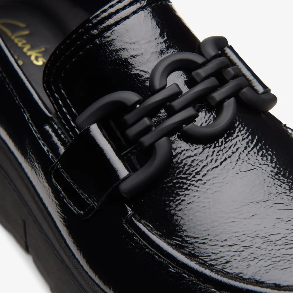 - Premium black patent leather upper