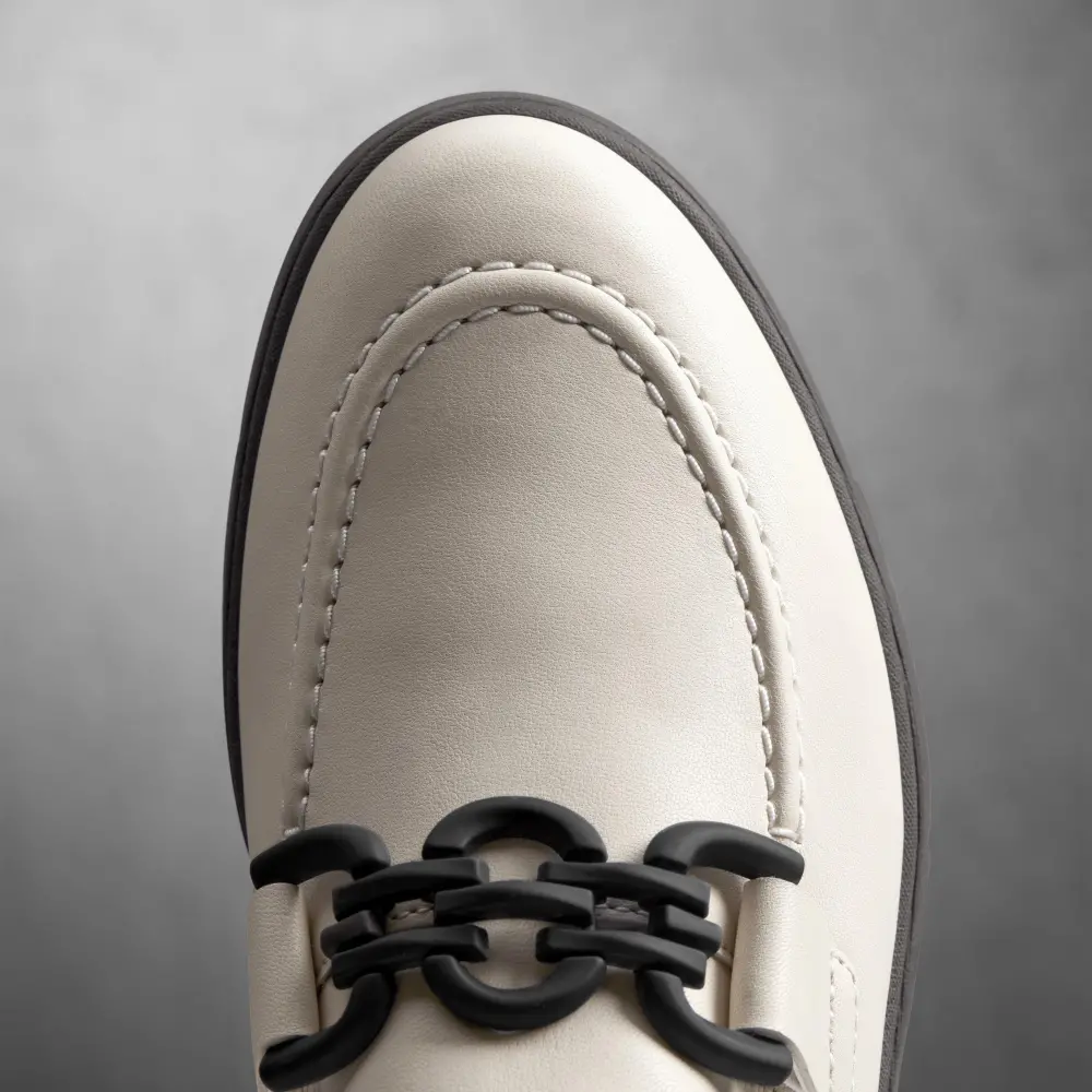 Bold shoes mean business, and our Loriini Izzy leather slip on is perfect for work and after-hours alike. Set atop a chunky wedge heel with flex grooved soles for ultimate stability, it makes use of our signature Contour Cushion footbeds to move you forward in total comfort. An almond toe shape and sleek metal trim bring a contemporary finish to this staple.