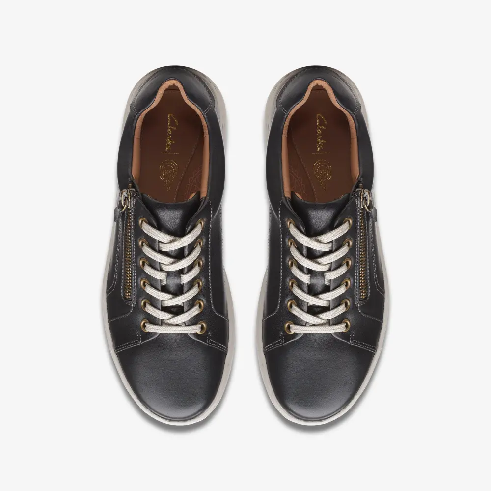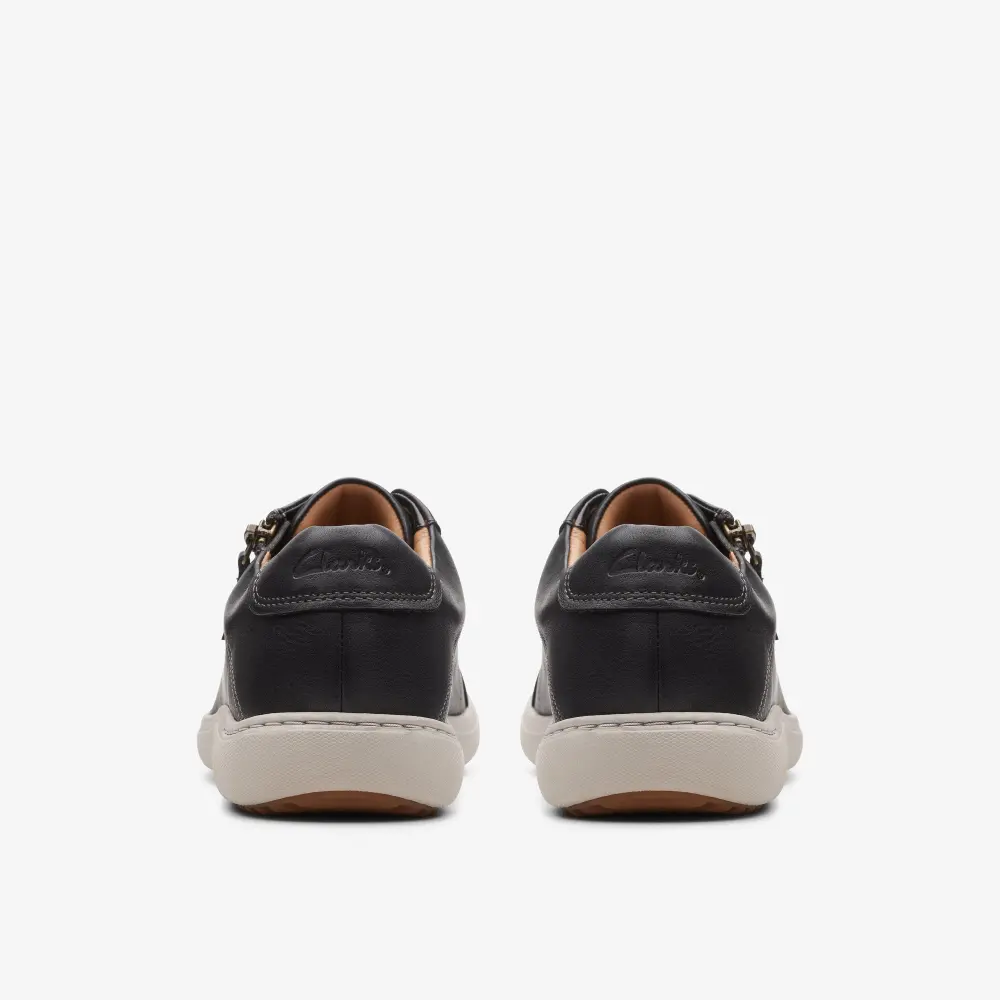 Stay light on your feet with the Nalle Lace. Supple black leather uppers bring sports-inspired style to Clarks' iconic craftmanship, resulting in a contemporary sneaker that's ideal for a modern life. Our supportive Contour Cushion footbed combines with a high-grip rubber sole for underfoot comfort on those busy days.