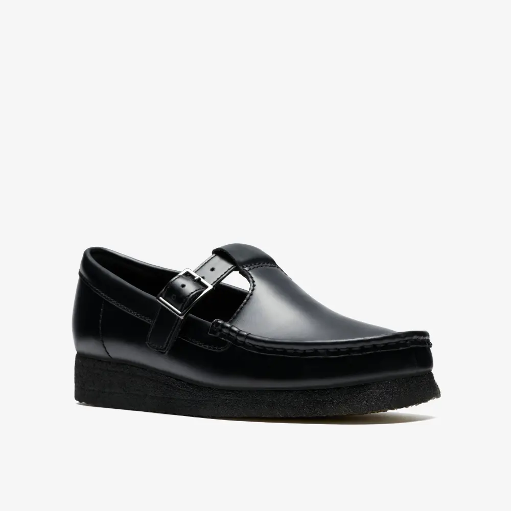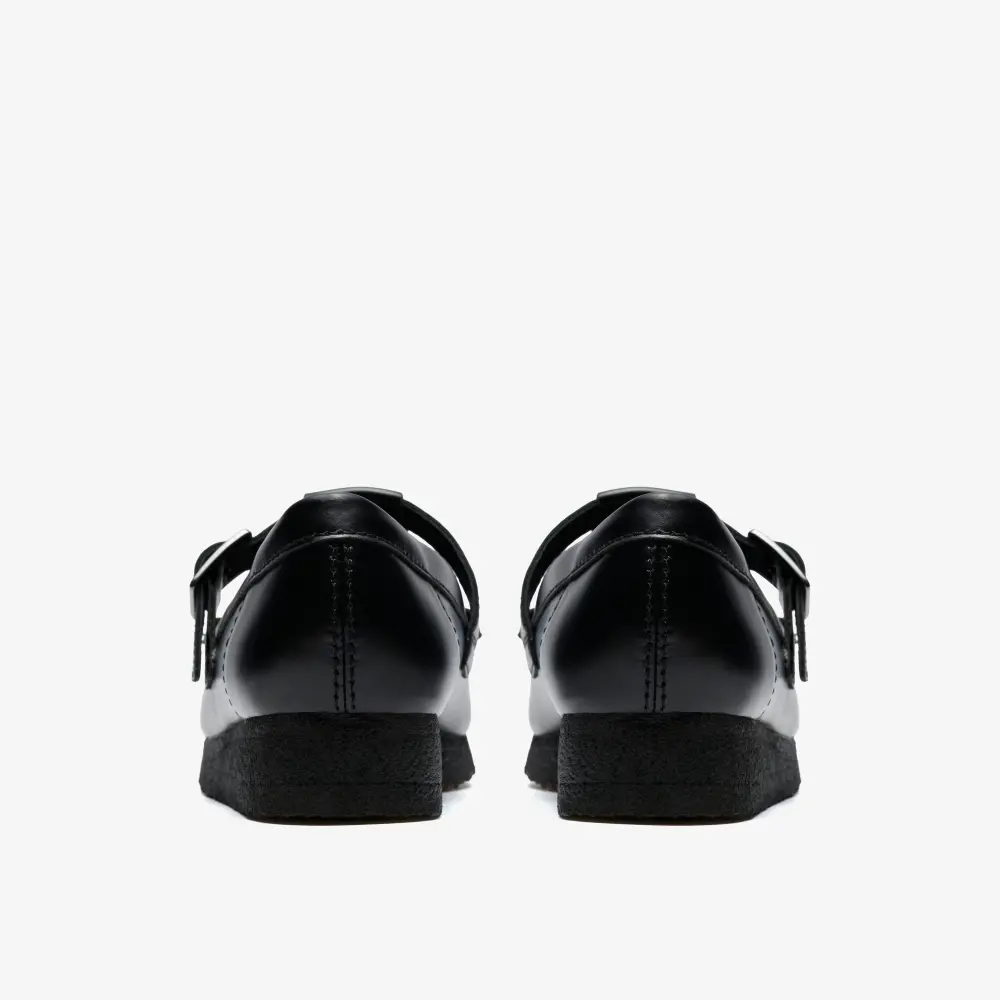 Womens Wallabee T Bar Black Hi Shine Leather T Bar Shoes